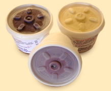 Nos glaces et sorbets sont proposés en différents conditionnements : bac de 1 Litre ou 2,5 Litres ainsi que petit pots individuels (90g) et bâtonnets (enrobés de chocolat).